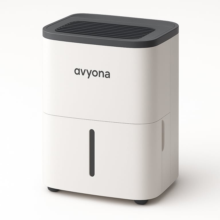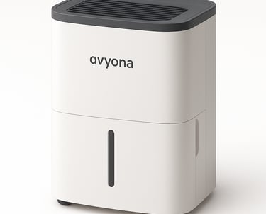 Quiet, compact, and beautifully designed — the Avyona Dehumidifier efficiently removes excess moisture from your space to help prevent mold, protect electronics, and create a more comfortable living environment. Ideal for bedrooms, closets, or home offices.